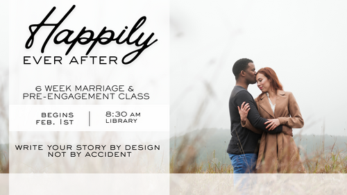 Happily Ever After: Making God's Dreams for Your Marriage Come True is a six-week curriculum designed to challenge couples to focus on God while exploring His purpose and design for marriage. This course aims to encourage unity, stimulate open communication, and build fresh excitement for your life together. Over the six sessions, we will dive into essential topics including the purpose of marriage, the nature of love, and God’s design for marital roles. Couples will also learn practical skills for communication and conflict resolution, wise financial stewardship, and the biblical design for physical intimacy, concluding with a focus on spiritual unity and leadership. Each class features concise biblical instruction, interactive discussions, and simple homework exercises to help you and your spouse apply these life-changing principles at home. Please email P. Jesse with any questions you might have. There is no cost for this class and just one registration per couple is required. We are not able to offer childcare for the class at this time.