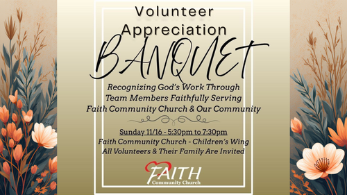 If you volunteer in any capacity, let us, the pastors and staff of Faith Community Church, show our appreciation and gratitude for all that you do to keep this place running.